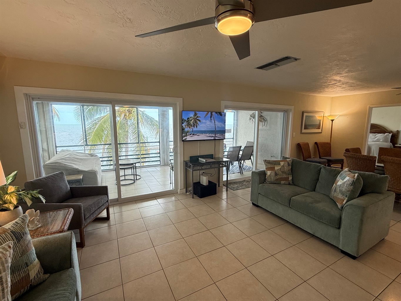 -Living Area: The open-concept living area features comfortable seating, perfect for family gatherings or unwinding after a day of exploring with Gulf Views.